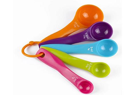 - This item is sure to brighten any kitchen. Five piece measuring spoons are great tools for using when following any recipe in the kitchen.
