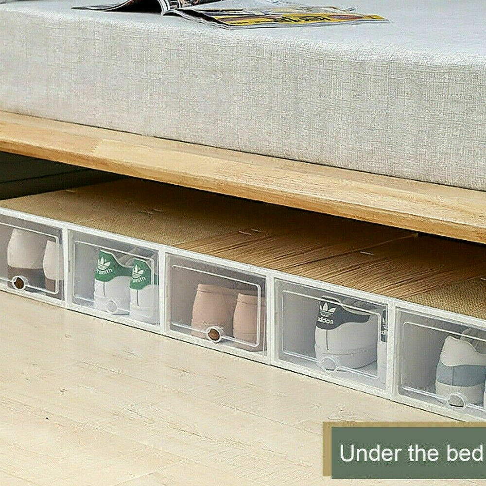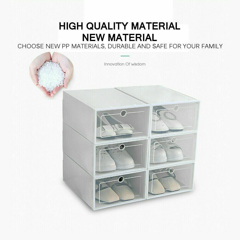Made of premium plastic material for durable and practical use. With high quality and clear design, the shoe storage box is great for organizing shoes and keeping them in good condition. And it can also be used for store other items such as belts, scarves, socks, cosmeticsetc, and fashion accessories.