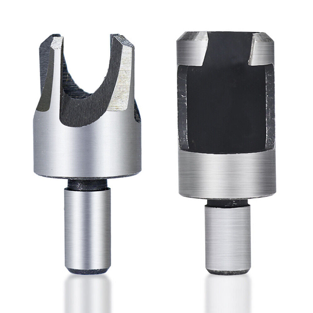 - Chamfered cutters make tapered plugs to fill countersank holes