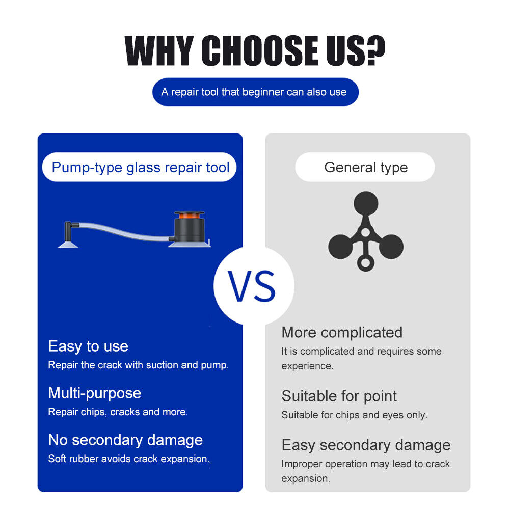 1. Pump-type repair tool provides a safe and secure glass repair way without secondary damage.