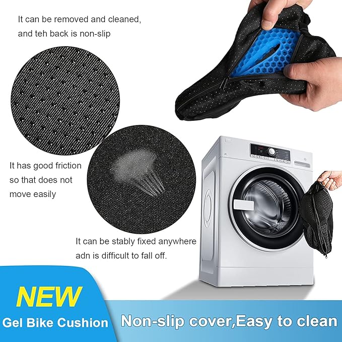 - ECO-FRIENDLY GEL & FOAM PADDED, MOST COMFORTABLE, HEALTHY - Unlike cheap bike seat cover, our bike seat cover uses a new vacuum process technology, padded by eco-friendly transparent silica gel and high density milky foam. No harm to health. Soft and feel comfortable. Can absorb the shock, reduce pain effectively, better protect your butt. Bring a healthier & more comfortable experience.